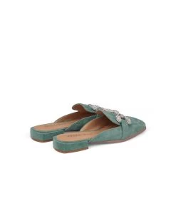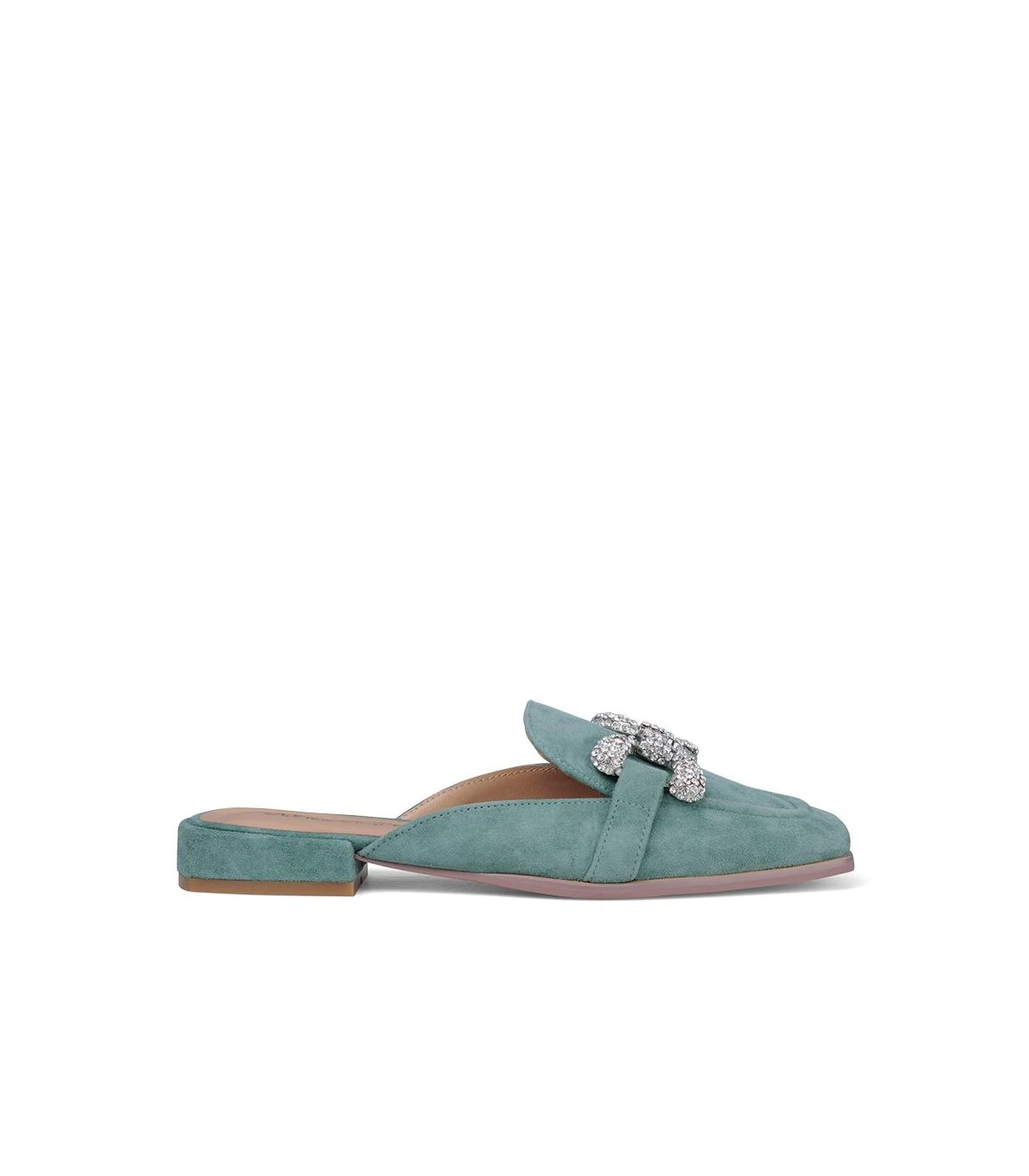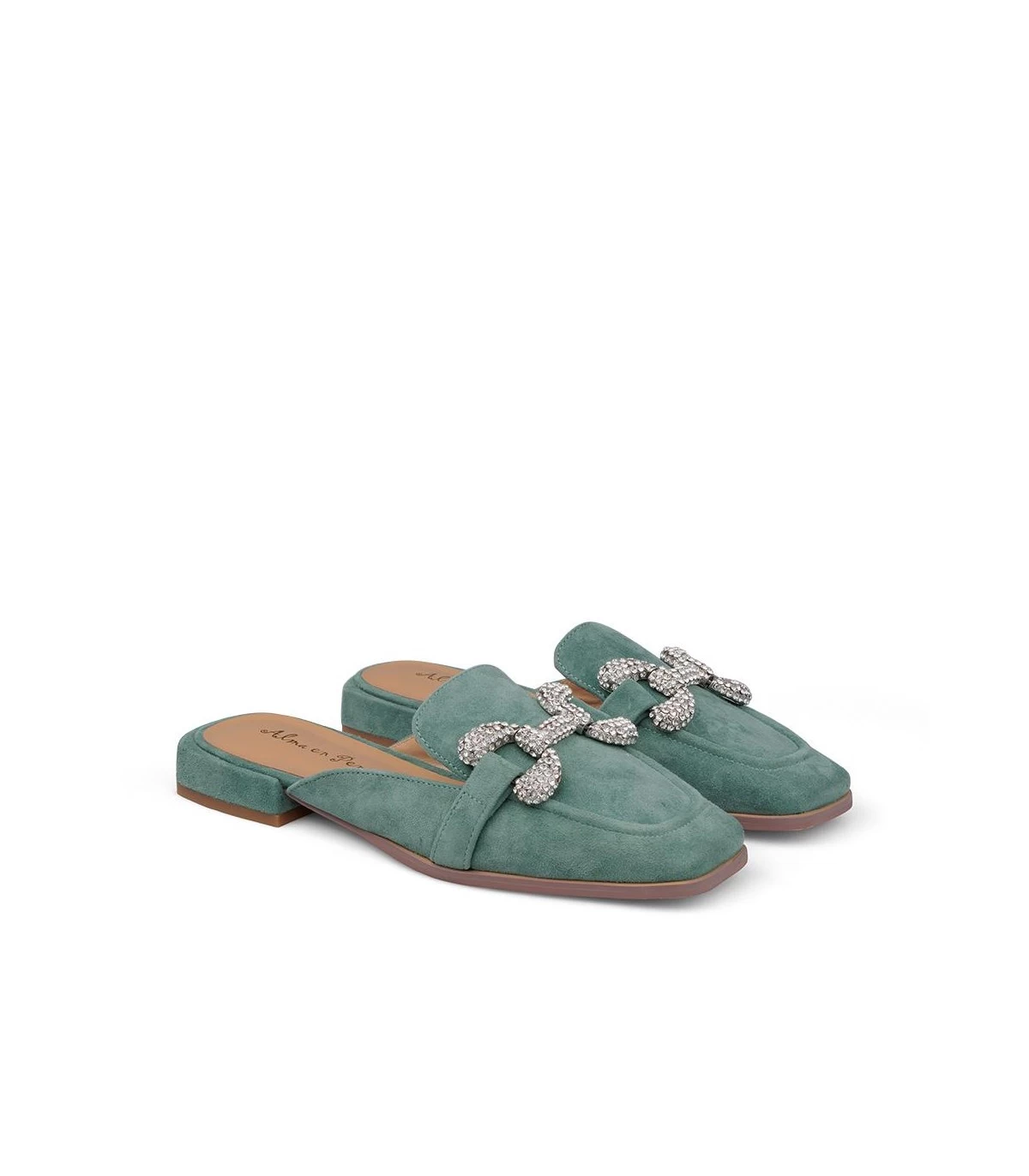 Mule de piel con adorno de pedrerÃa. Plantilla acolchada de piel. La altura del tacón es de 1cm.