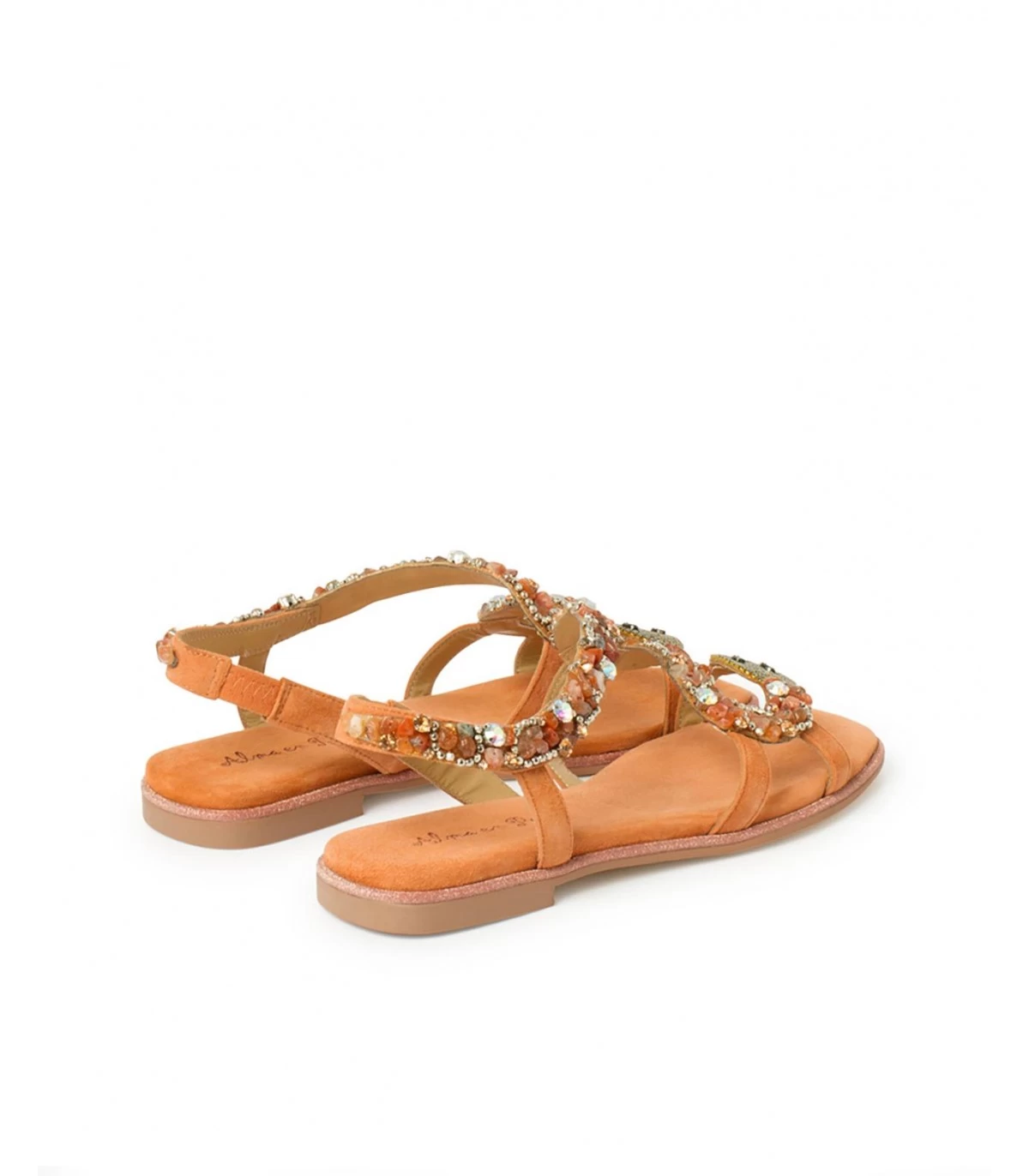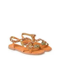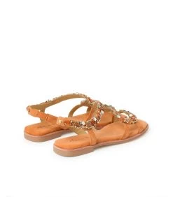 Sandalia plana de piel con pedrerÃa. Plantilla acolchada de piel. La altura del tacón es de 1cm.