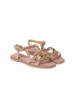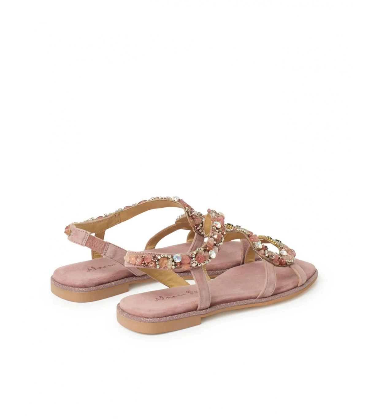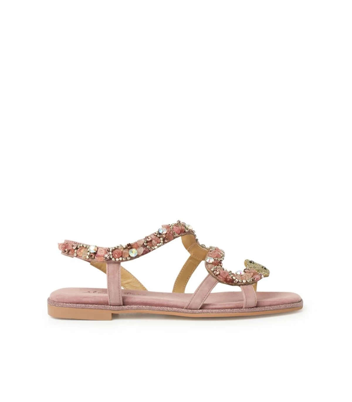 Sandalia plana de piel con pedrerÃa. Plantilla acolchada de piel. La altura del tacón es de 1cm.
