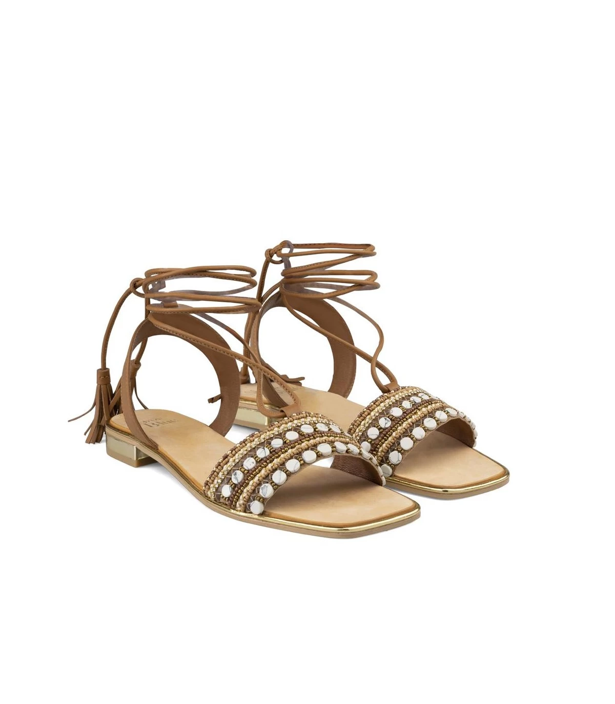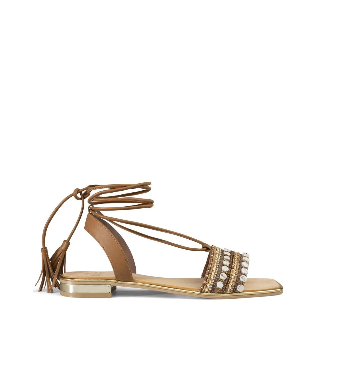 Sandalia plana con tira de pedrerÃa. Plantilla acolchada para un mayor confort. La altura del tacón es de 1cm.