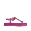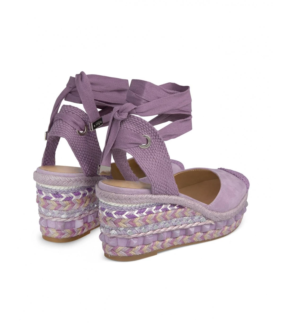 Sandalia cuña valenciana de piel con punta rendondeada, cierre con cordones en tobillo. Suela acolchada. Altura del tacón de 7cm