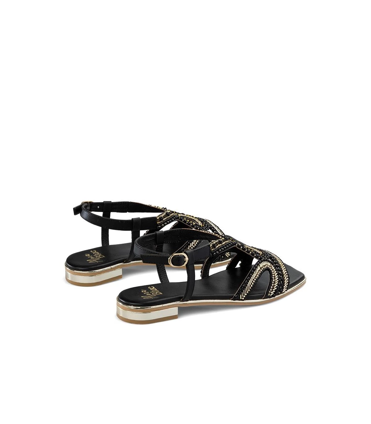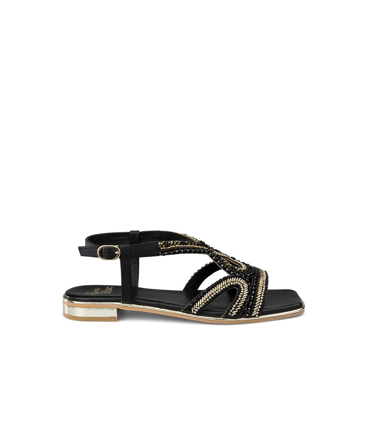 Sandalia plana con pedrerÃa. Plantilla acolchada para un mayor confort. La altura del tacón es de 1cm.