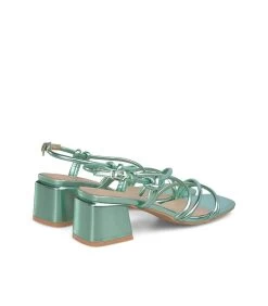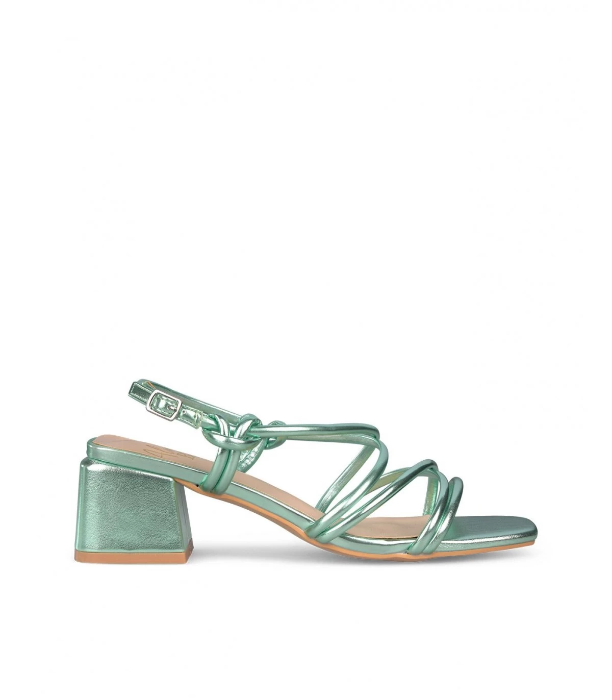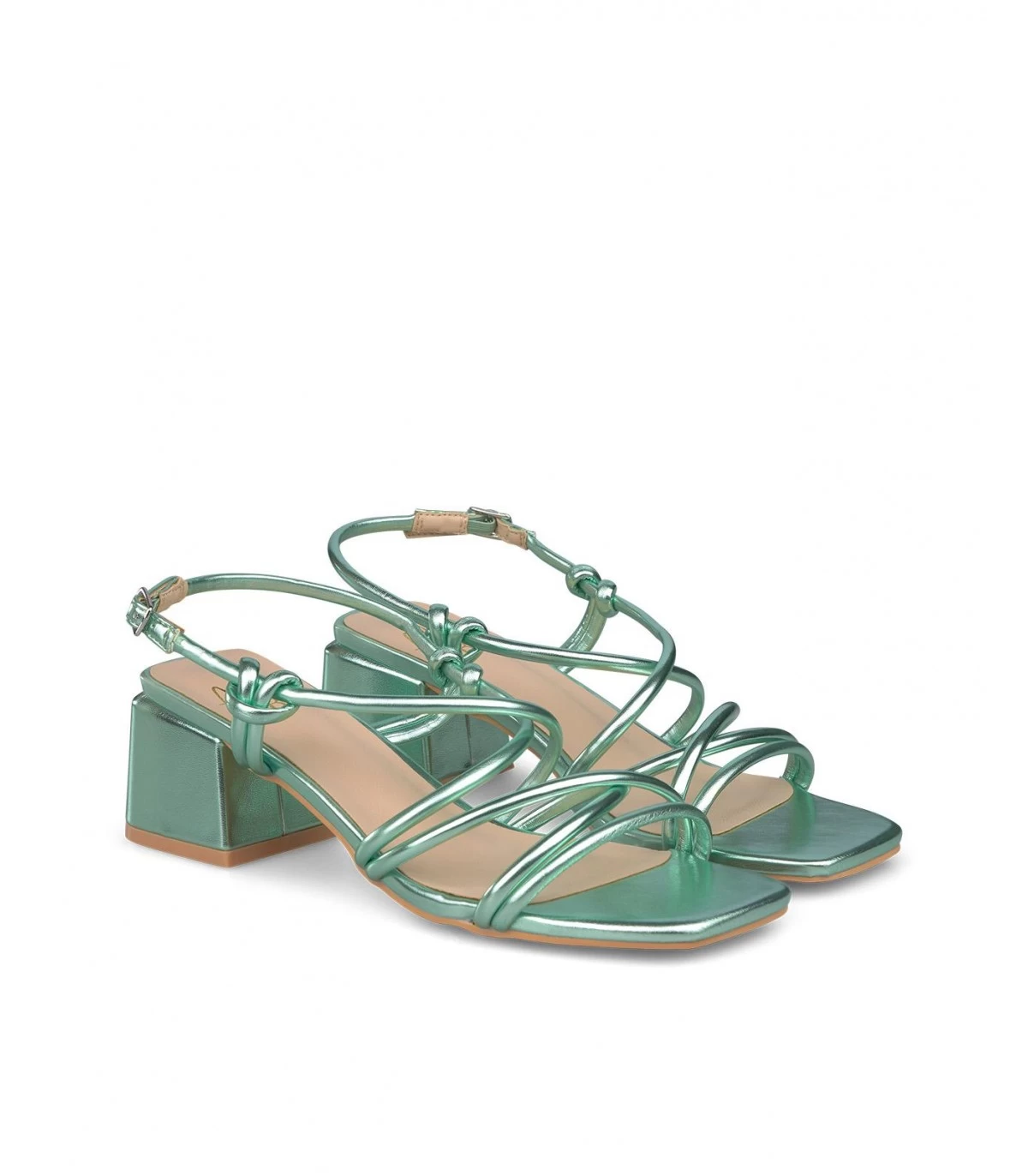 Sandalia de tacón con tiras. Cierre con hebilla ajustable. Plantilla acolchada para un mayor confort. La altura del tacón es de 6cm.