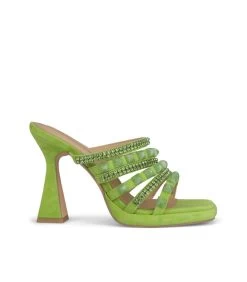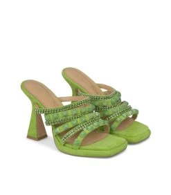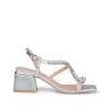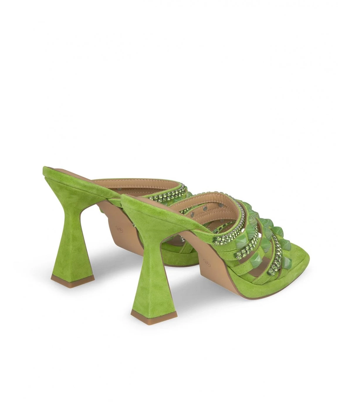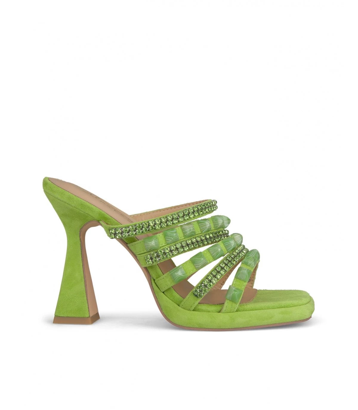 Sandalia de tacón realizada en piel. Tiras delanteras cubiertas de pedrerÃa. Plantilla acolchada de piel. La altura del tacón son 11cm.