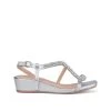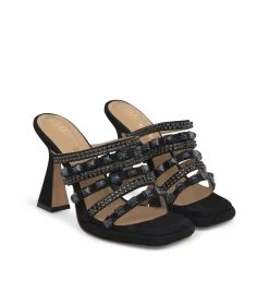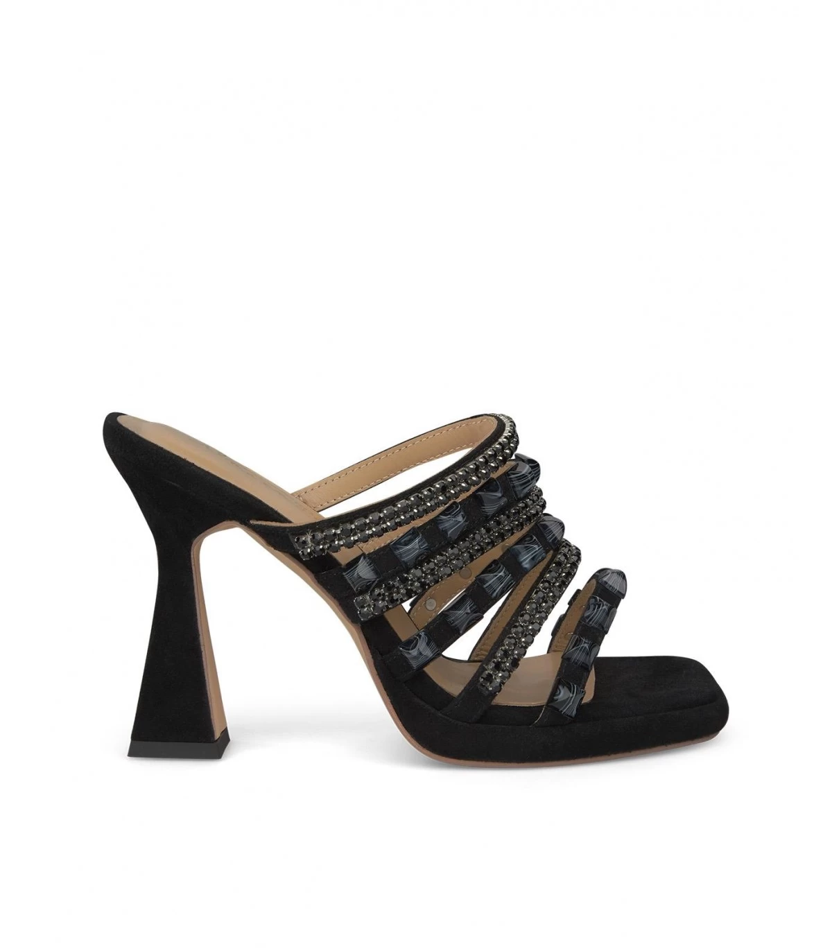 Sandalia de tacón realizada en piel. Tiras delanteras cubiertas de pedrerÃa. Plantilla acolchada de piel. La altura del tacón son 11cm.