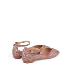 Cangrejera plana cubierta de tachuelas y pedrerÃa. Plantilla acolchada para un mayor confort. Cierre con hebilla ajustable. La altura del tacón es de 1cm.