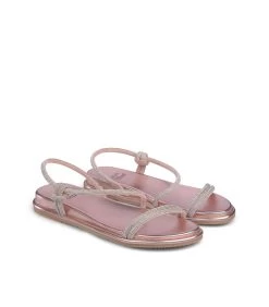 Cangrejera plana cubierta de tachuelas y pedrerÃa. Plantilla acolchada para un mayor confort. Cierre con hebilla ajustable. La altura del tacón es de 1cm.