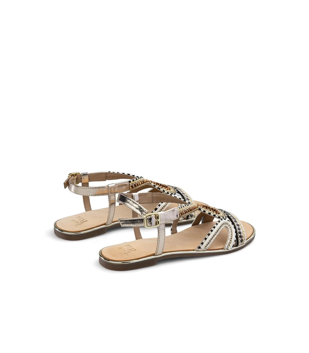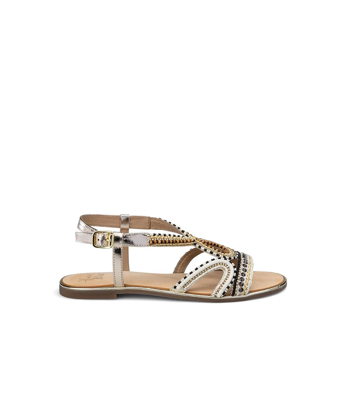 Sandalia plana con pedrerÃa. Plantilla acolchada para un mayor confort. La altura del tacón es de 1cm.