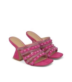 Sandalia de tacón realizada en piel con adornos de pedrerÃa en las tiras delanteras. Plantilla acolchada de piel. La altura del tacón es de 9cm.