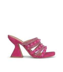 Sandalia de tacón realizada en piel con adornos de pedrerÃa en las tiras delanteras. Plantilla acolchada de piel. La altura del tacón es de 9cm.