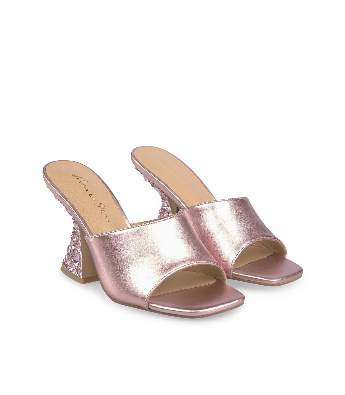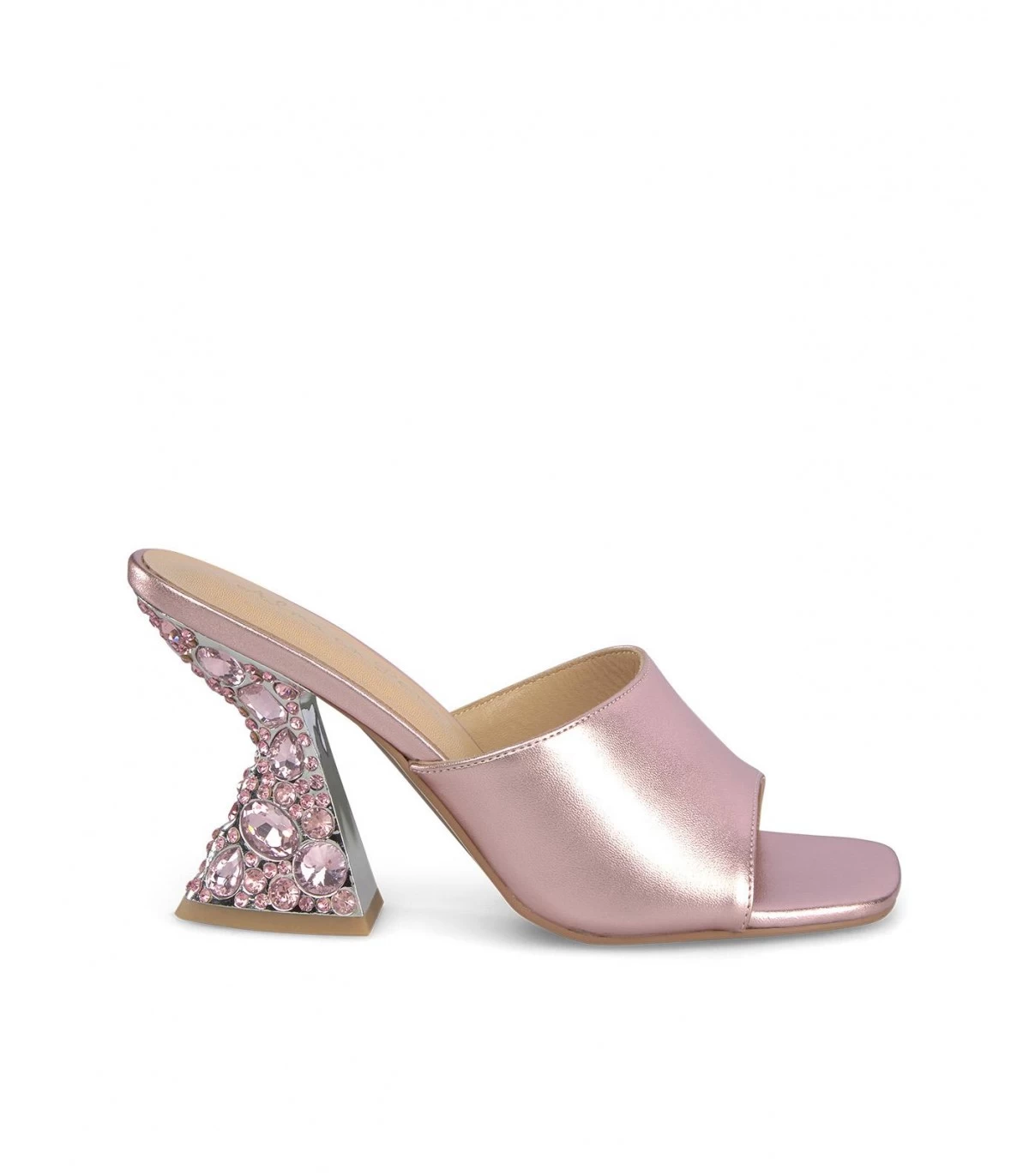 Sandalia de tacón con pedrerÃa. Plantilla acolchada de piel. La altura del tacón es de 9cm.