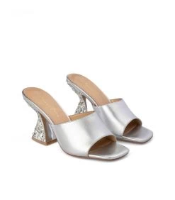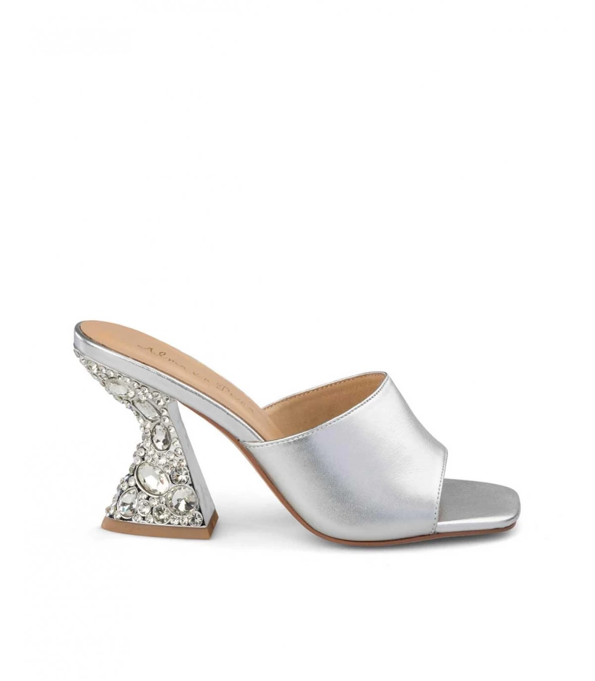Sandalia de tacón con pedrerÃa. Plantilla acolchada de piel. La altura del tacón es de 9cm.