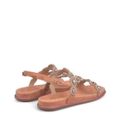 Sandalia plana de piel con tiras cubiertas de pedrerÃa. Cierre con hebilla ajustable. Plantilla acolchada de piel. La altura del tacón es de 2cm.