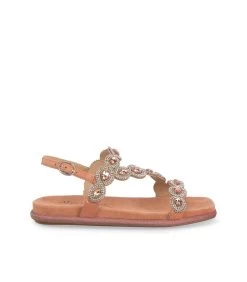 Sandalia plana de piel con tiras cubiertas de pedrerÃa. Cierre con hebilla ajustable. Plantilla acolchada de piel. La altura del tacón es de 2cm.