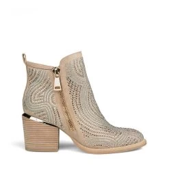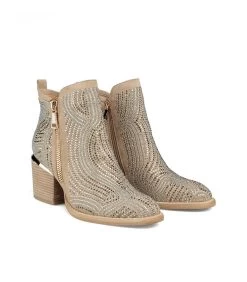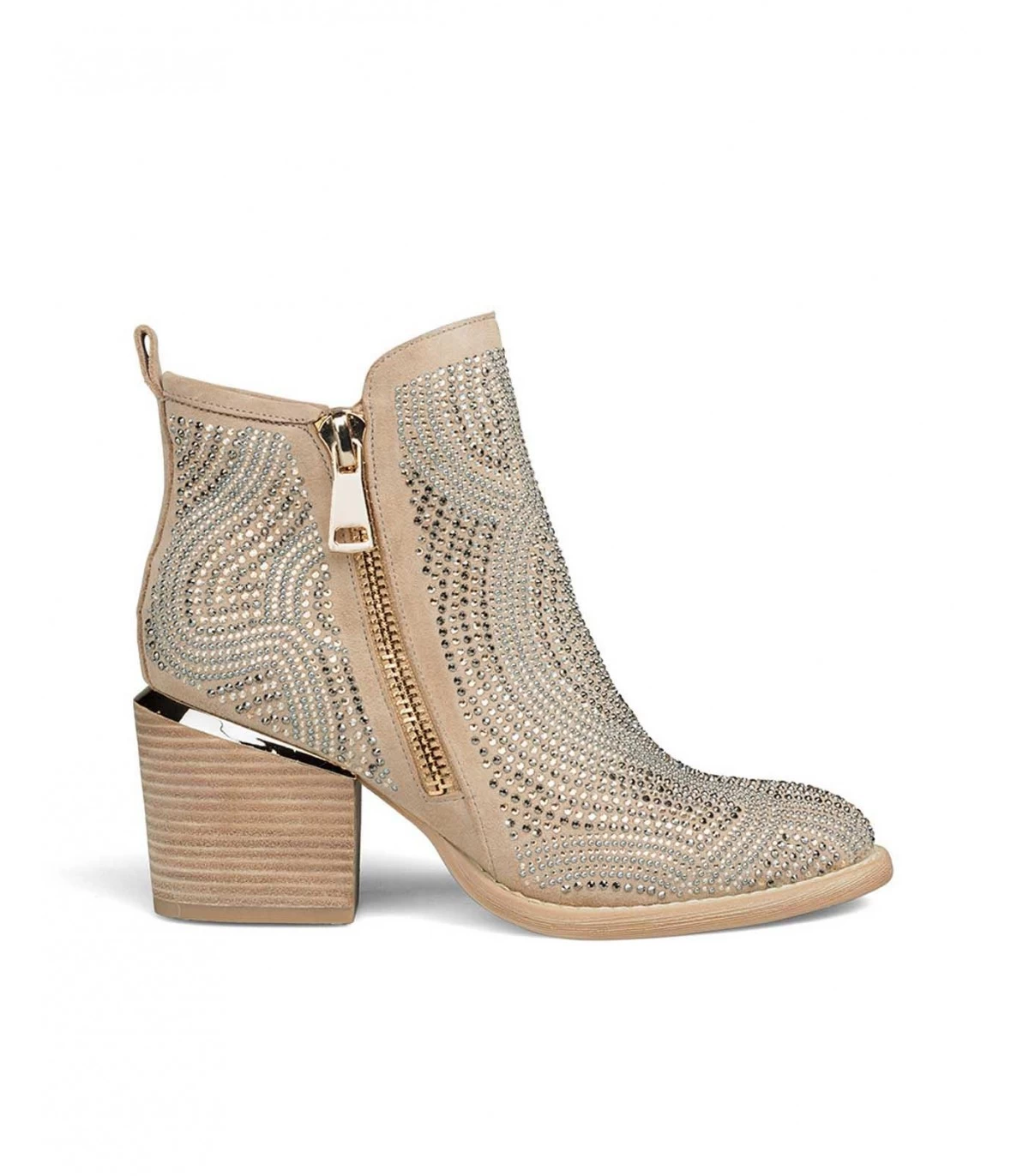 BotÃn de piel cubierto de pedrerÃa. La altura del tacón es de 8cm y la altura de la caña es de 12cm. Plantilla acolchada de piel.