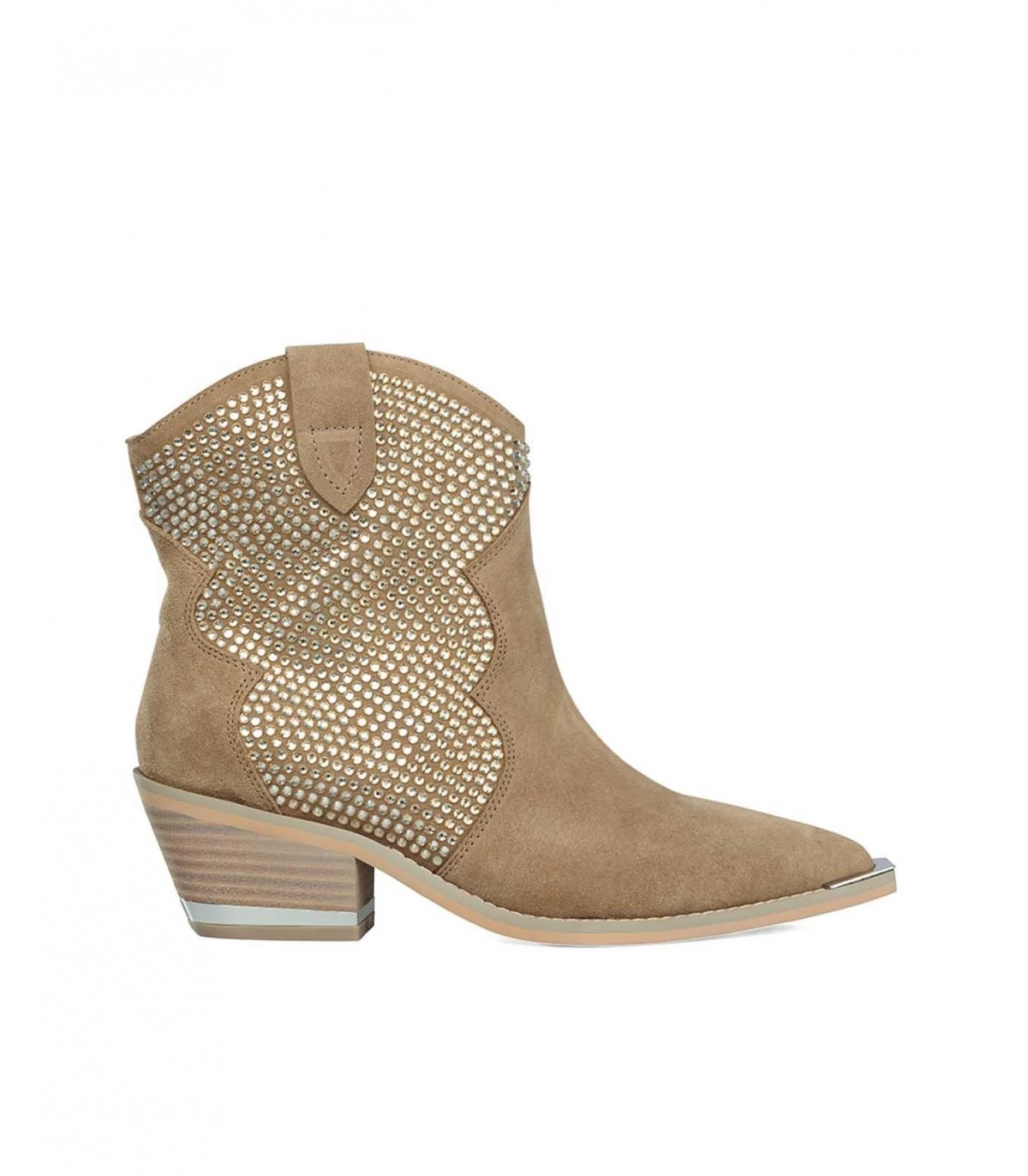 BotÃn de piel cubierto de pedrerÃa La altura del tacón es de 6cm y la altura de la caña es de 12cm. Plantilla acolchada de piel.