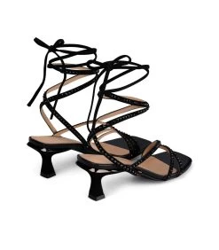 Sandalia de tacón realizada en piel con adornos de pedrerÃa. Tiras envolventes al tobillo. Plantilla acolchada de piel. La altura del tacón es de 5,5cm.