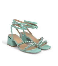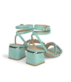 Sandalia de tacón con tiras cubiertas de pedrerÃa. Cierre con hebilla ajustable. Plantilla acolchada para un mayor confort. La altura del tacón es de 6cm.