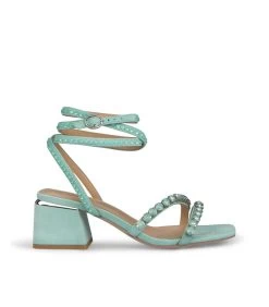 Sandalia de tacón con tiras cubiertas de pedrerÃa. Cierre con hebilla ajustable. Plantilla acolchada para un mayor confort. La altura del tacón es de 6cm.