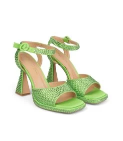 Sandalia de satén con tacón. Cierre con hebilla ajustable. Plantilla acolchada de piel. La altura del tacón son 11cm.