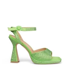 Sandalia de satén con tacón. Cierre con hebilla ajustable. Plantilla acolchada de piel. La altura del tacón son 11cm.