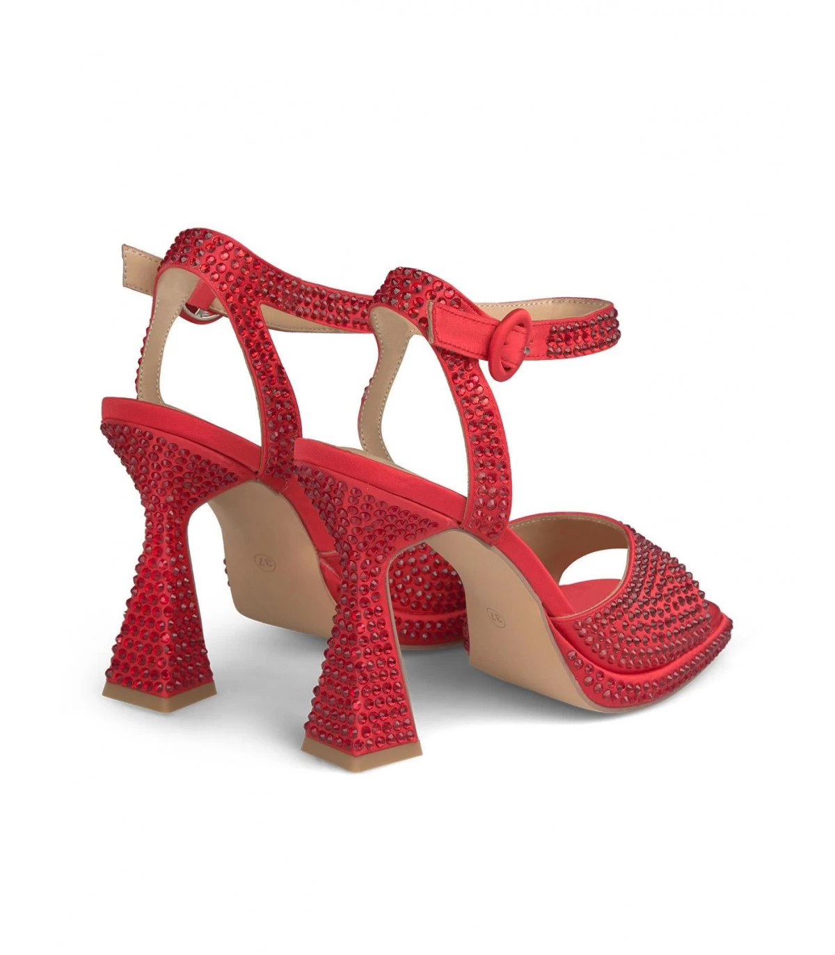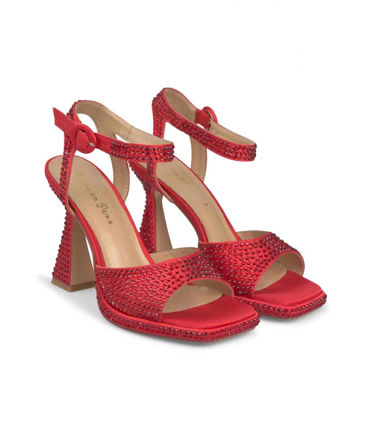 Sandalia de satén con tacón. Cierre con hebilla ajustable. Plantilla acolchada de piel. La altura del tacón son 11cm.