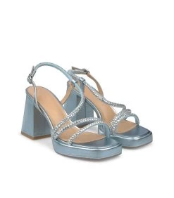 Sandalia de tacón con plataforma realizada en piel con tiras entrelazadas hasta el tobillo de pedrerÃa. Cierre ajustable de hebilla. Plantilla acolchada de piel. La altura del tacón son 9cm.
