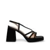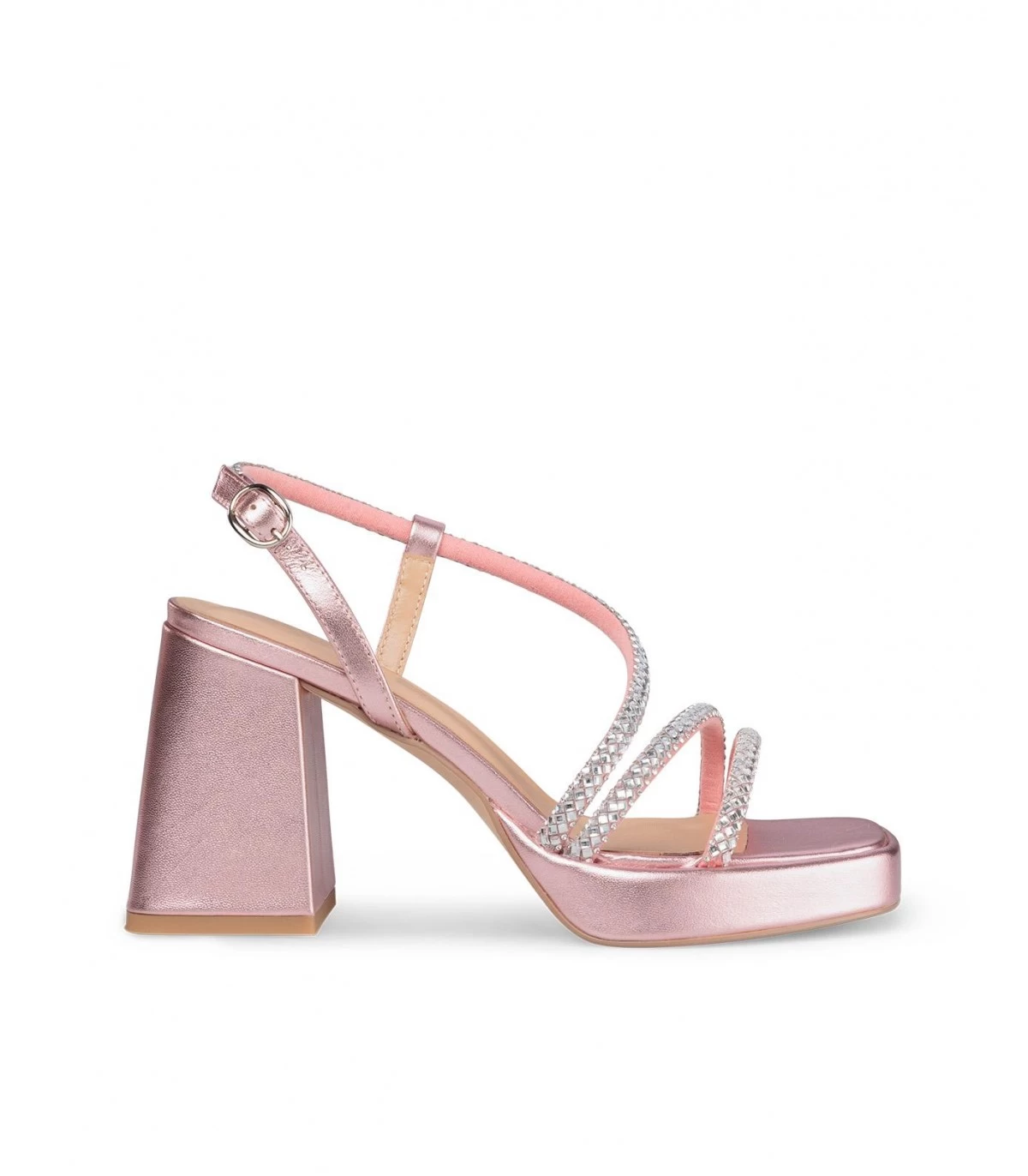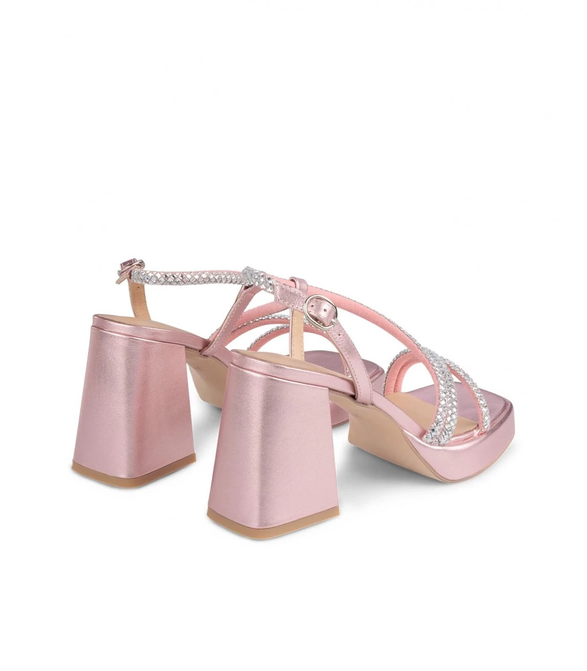 Sandalia de tacón con plataforma realizada en piel con tiras entrelazadas hasta el tobillo de pedrerÃa. Cierre ajustable de hebilla. Plantilla acolchada de piel. La altura del tacón son 9cm.