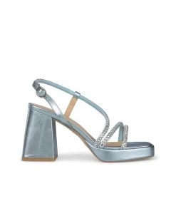 Sandalia de tacón con plataforma realizada en piel con tiras entrelazadas hasta el tobillo de pedrerÃa. Cierre ajustable de hebilla. Plantilla acolchada de piel. La altura del tacón son 9cm.