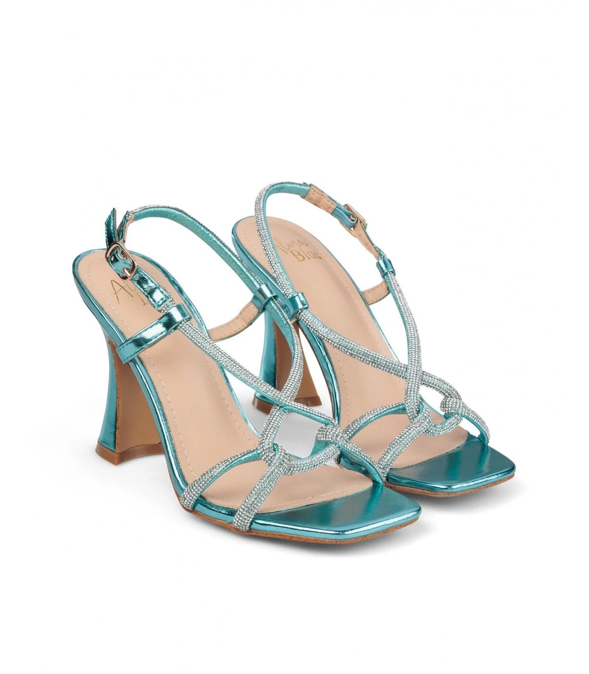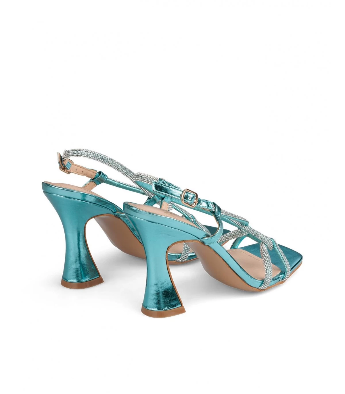 Sandalia de tacón con tiras de tachuelas. Plantilla acolchada para un mayor confort. La altura del tacón es de 9cm.
