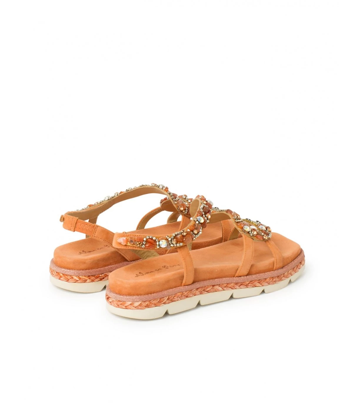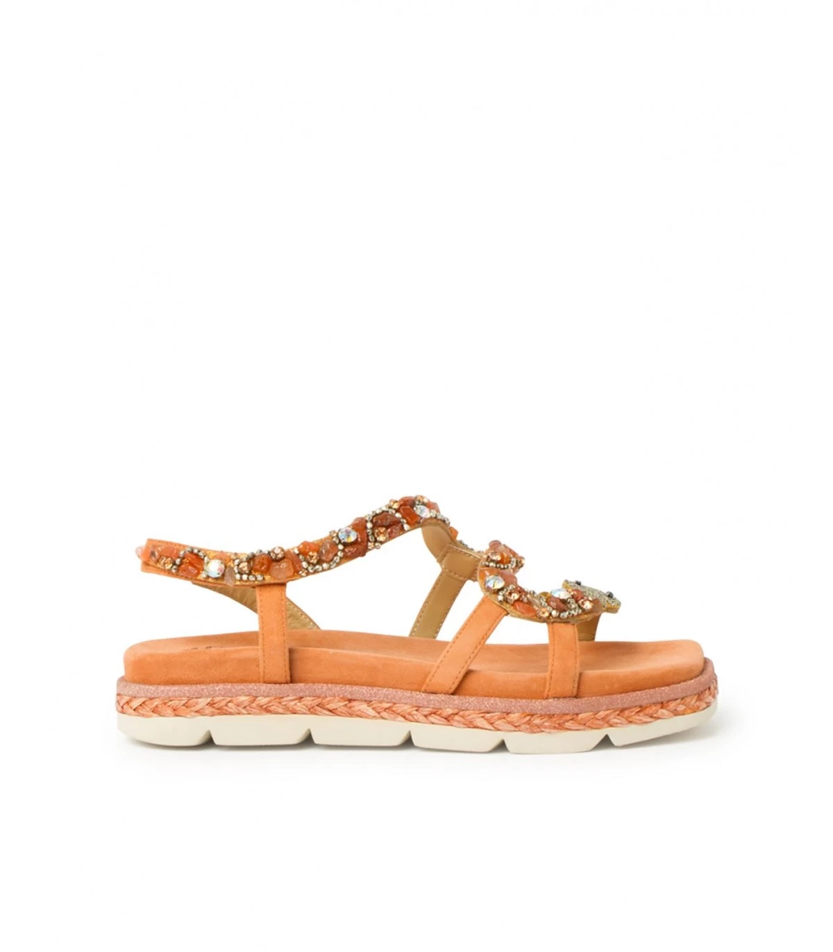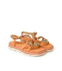Sandalia plana de piel con plataforma y serpiente de pedrerÃa decorativa. Plantilla acolchada de piel para un mayor confort. La altura de la suela es de 3cm.