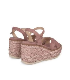 Sandalia cuña con tiras trenzadas. Plantilla acolchada para un mayor confort. La altura del tacón es de 9,5cm.