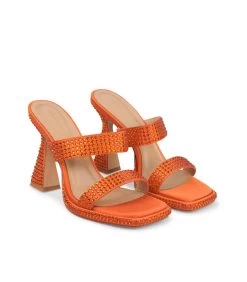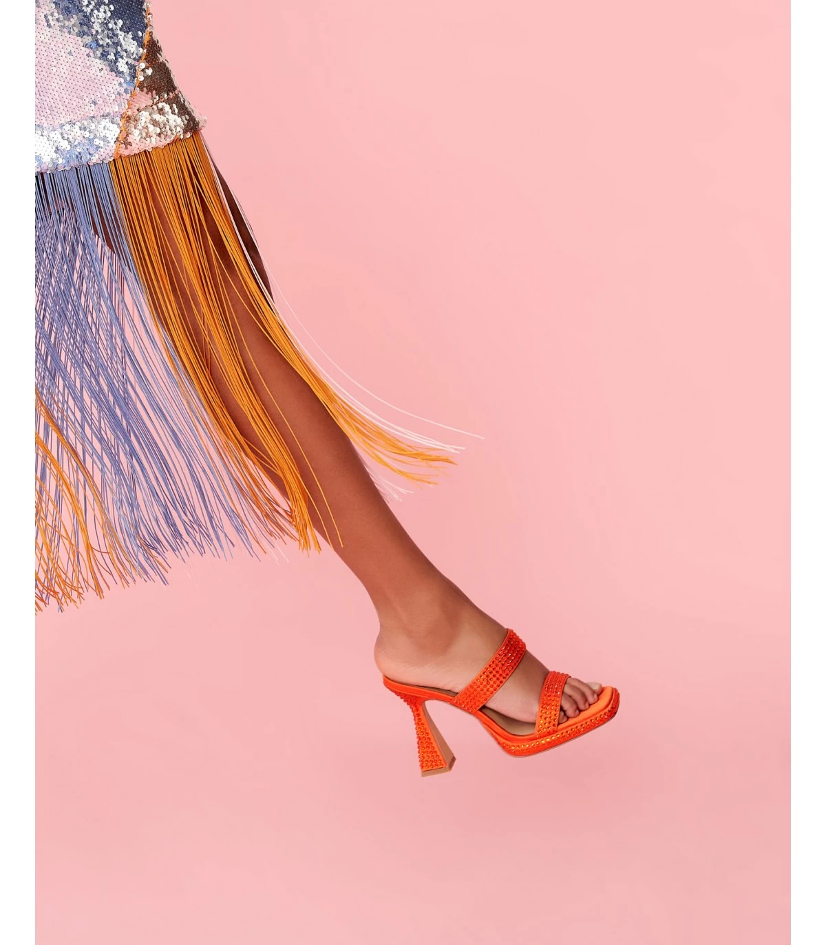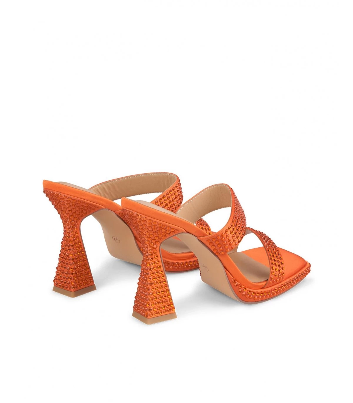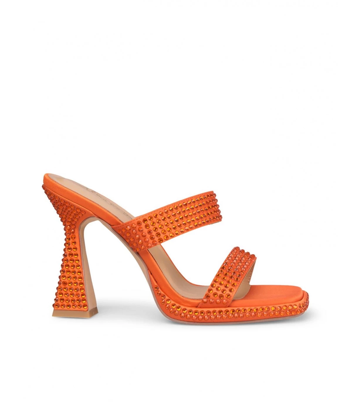 Sandalia de tacón realizada en piel con adornos de pedrerÃa en el tacón y las tiras delanteras. Plantilla acolchada de piel. La altura del tacón es de 11cm.