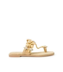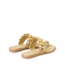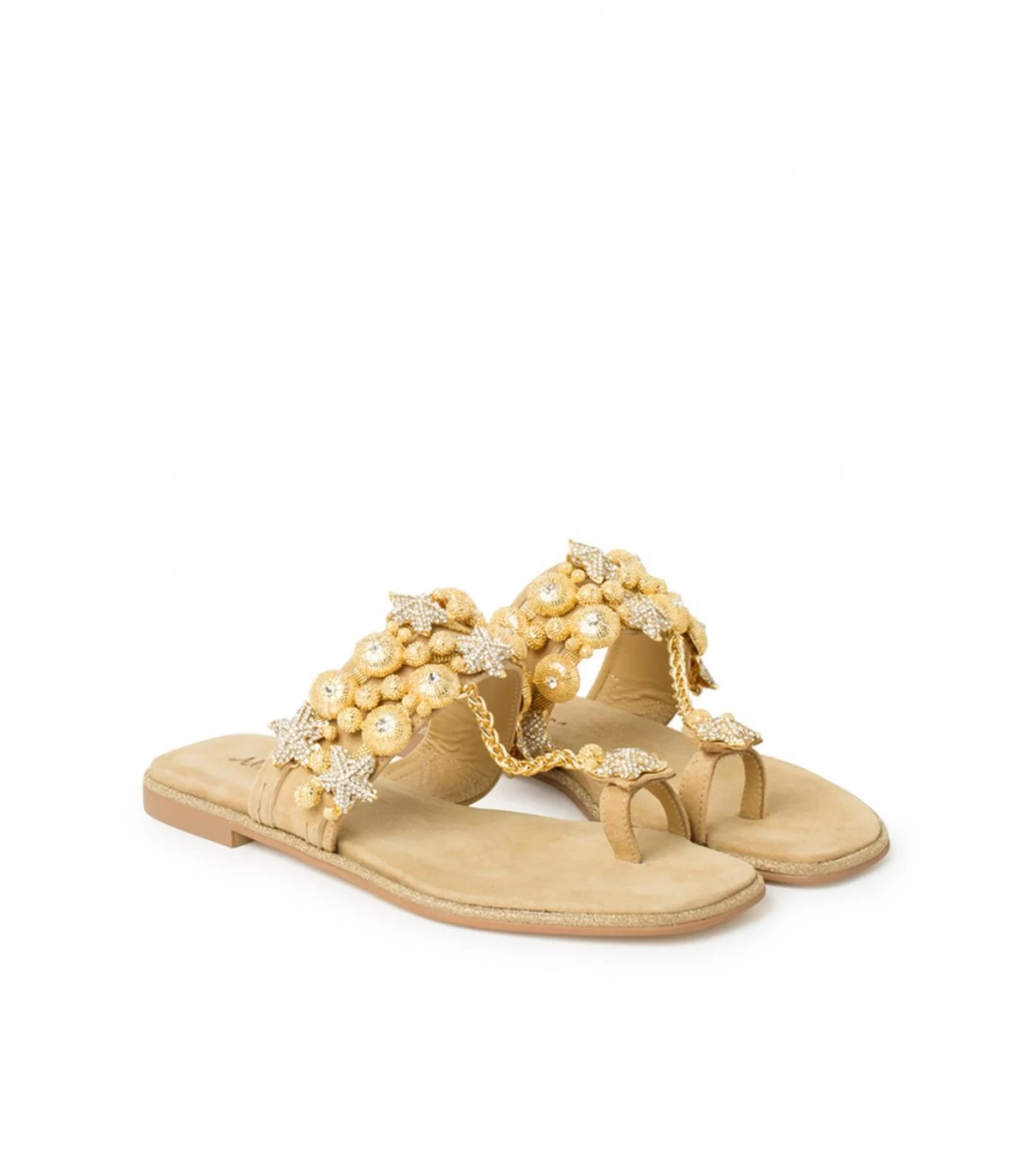 Sandalia plana de piel con adornos. Plantilla acolchada de piel. La altura del tacón es de 1cm.