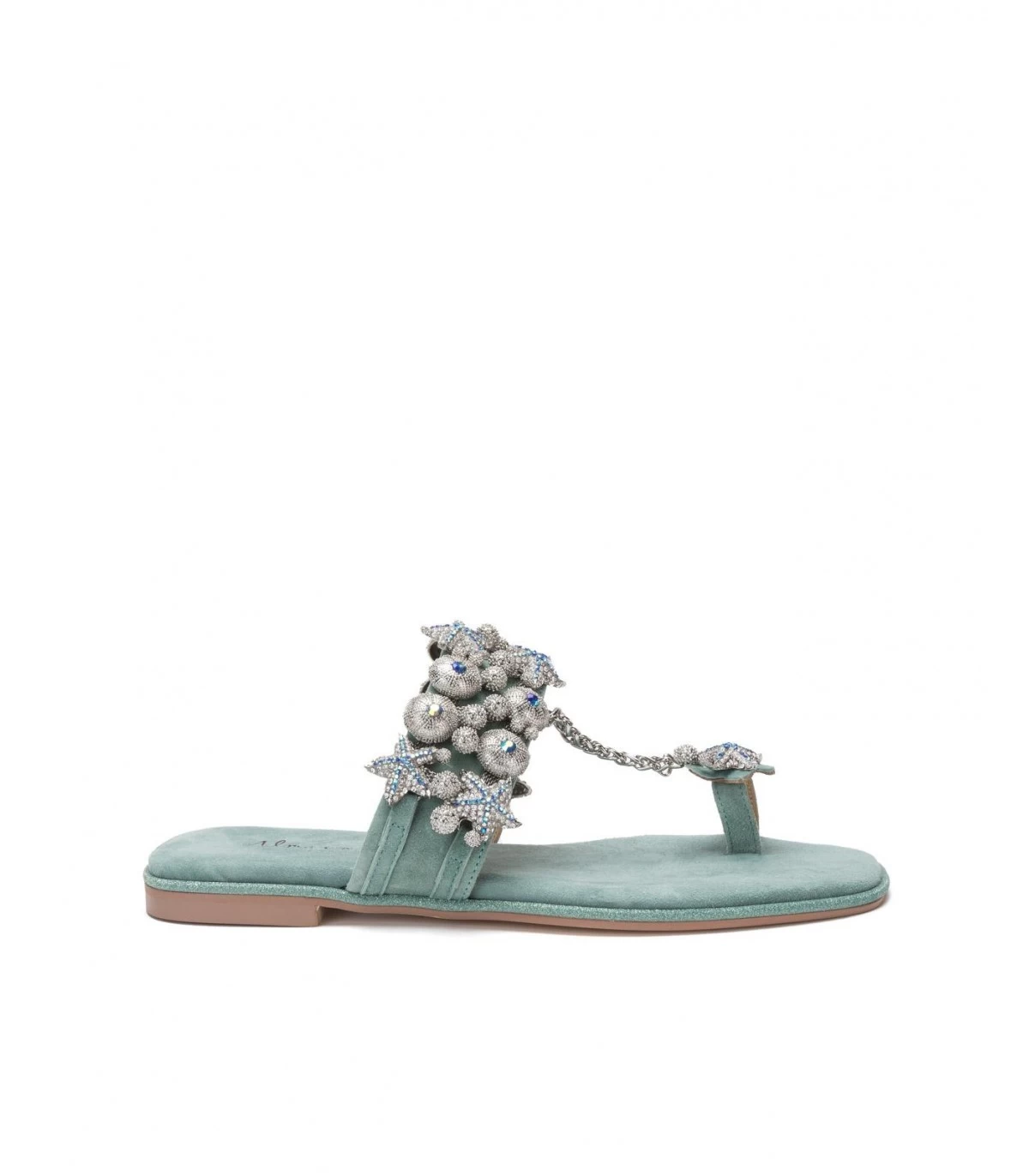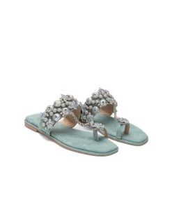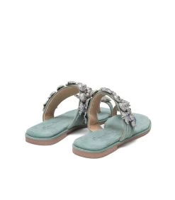 Sandalia plana de piel con adornos. Plantilla acolchada de piel. La altura del tacón es de 1cm.