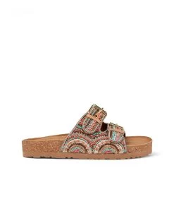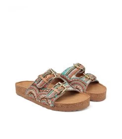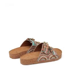 Sandalia plana con pedrerÃa y hebillas. Plantilla acolchada para un mayor confort. La altura del tacón es de 3cm.