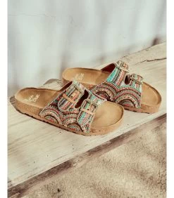 Sandalia plana con pedrerÃa y hebillas. Plantilla acolchada para un mayor confort. La altura del tacón es de 3cm.