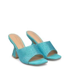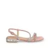 Sandalia de tacón realizada en piel con adornos de pedrerÃa en el tacón y la tira delantera. Plantilla acolchada de piel. La altura del tacón es de 9cm.