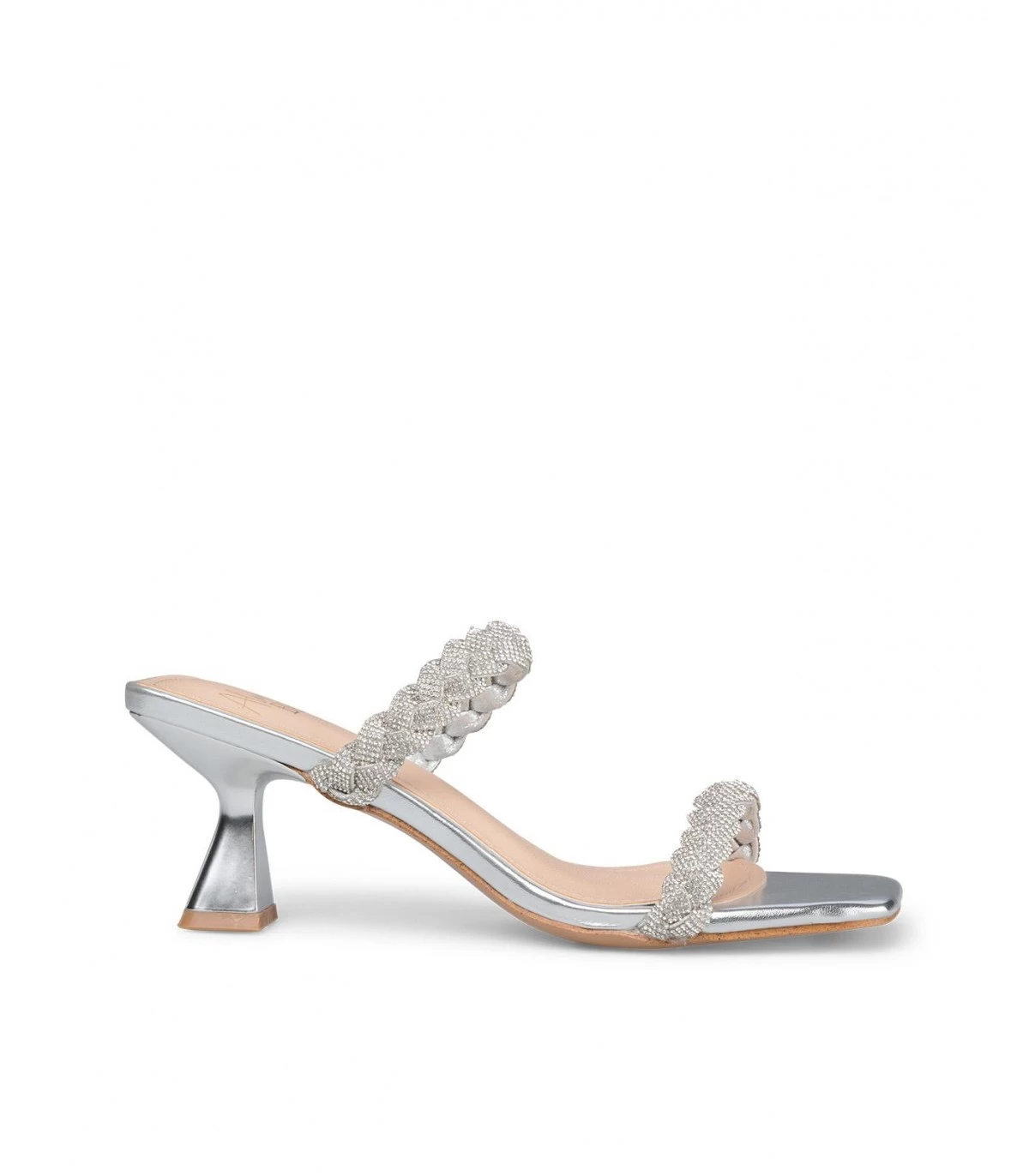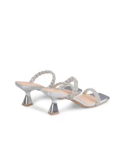 Sandalia de tacón con tiras trenzadas de tachuelas. Plantilla acolchada para un mayor confort. La altura del tacón es de 6cm.