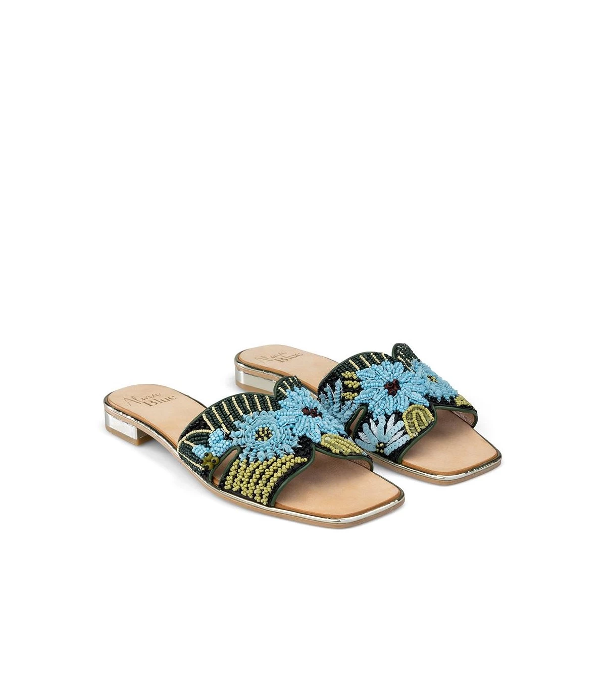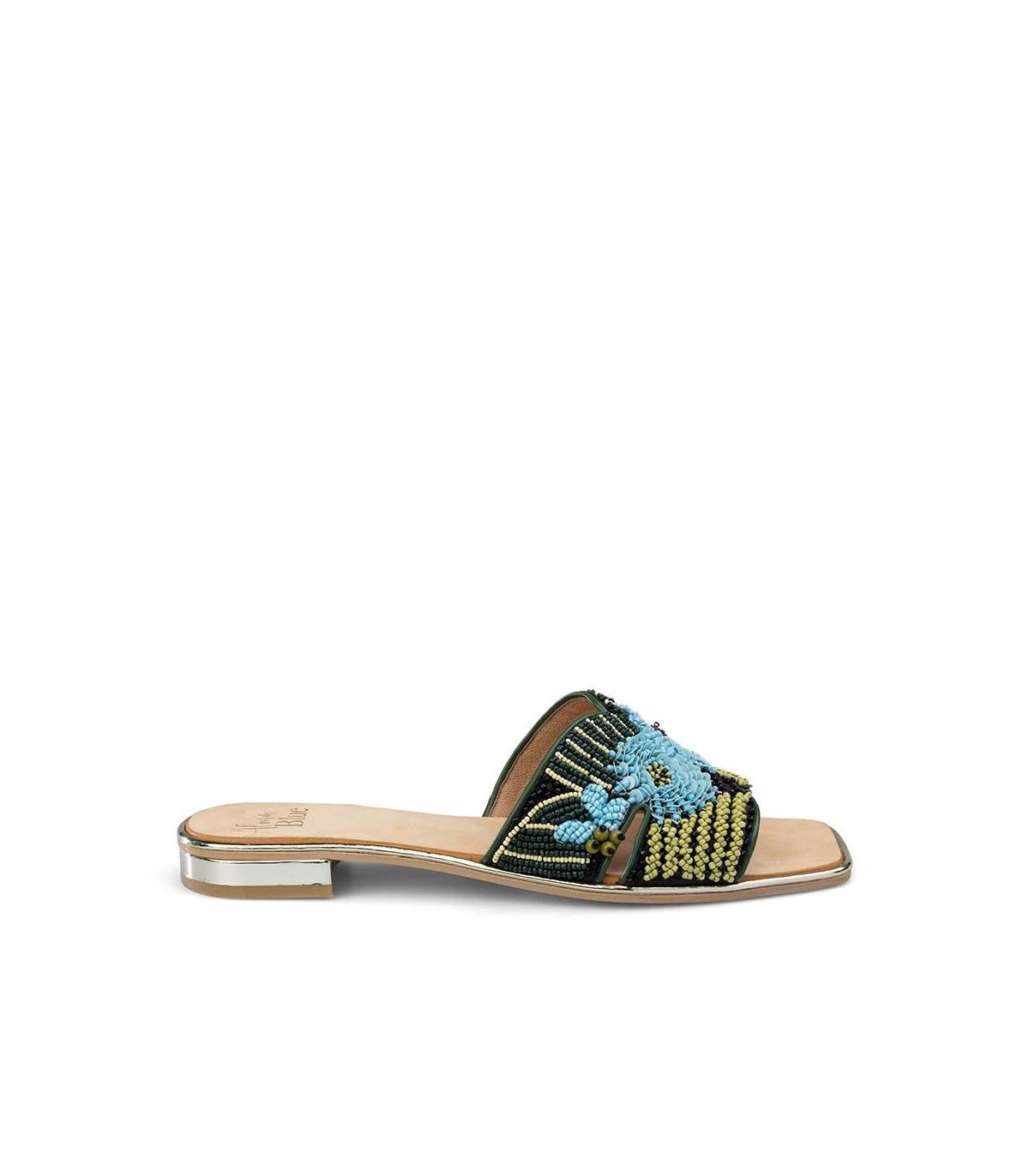 Sandalia plana con tira de pedrerÃa. Plantilla acolchada para un mayor confort. La altura del tacón es de 1cm.