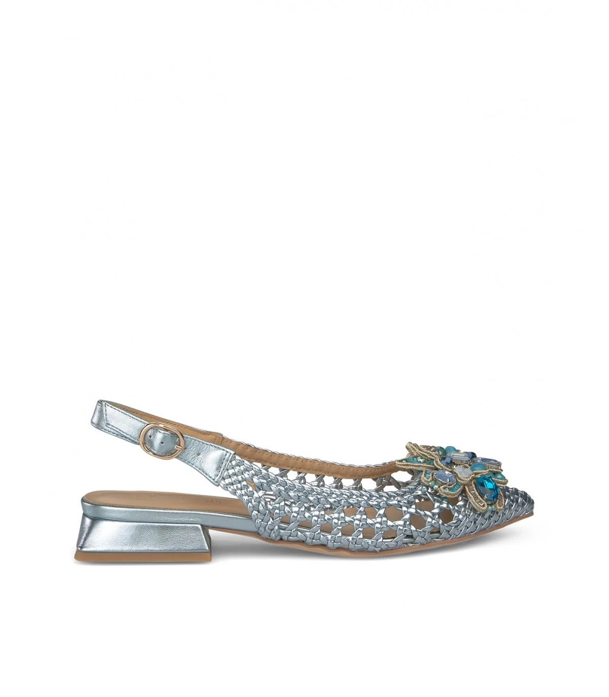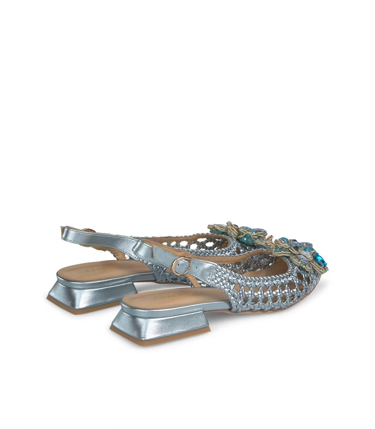 Bailarina destalonada troquelada detalle de pedrerÃa. Plantilla acolchada de piel. La altura del tacón es de 1cm.