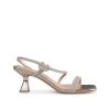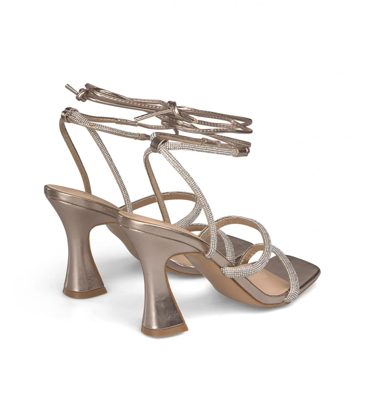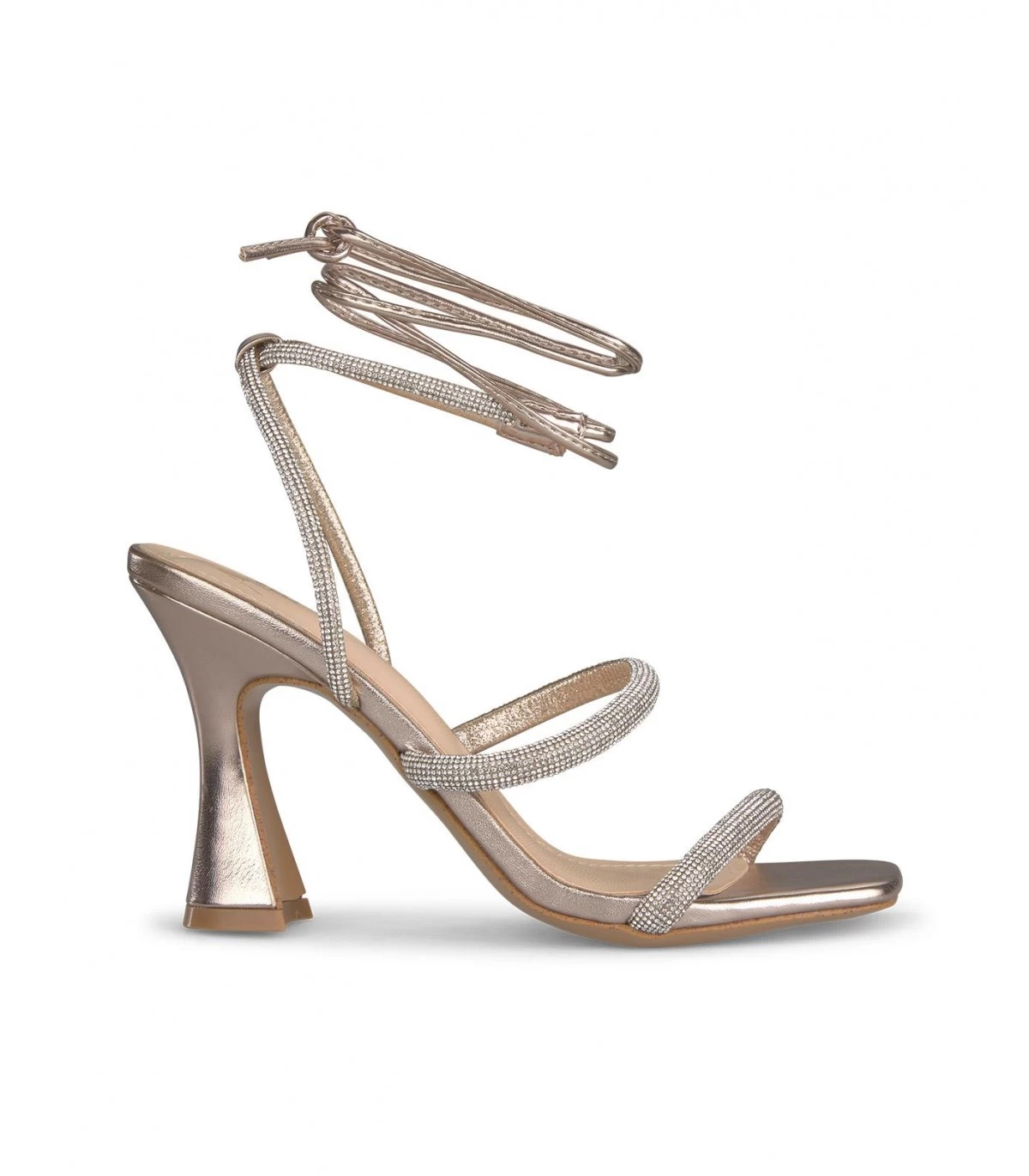 Sandalia de tacón con tiras de tachuelas. Tiras envolventes al tobillo. Plantilla acolchada para un mayor confort. La altura del tacón es de 9cm.