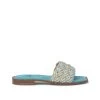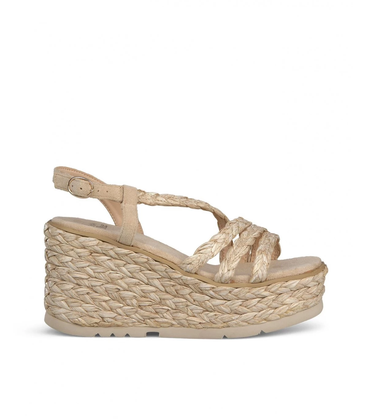 Sandalia tipo cuña con tiras trenzadas. Plantilla acolchada para un mayor confort. La altura del tacón es de 9,5cm.