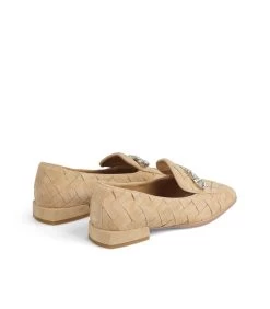 Mocasin de piel trenzado con adorno de pedrerÃa. Plantilla acolchada de piel. La altura del tacón es de 1cm.