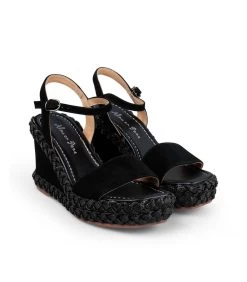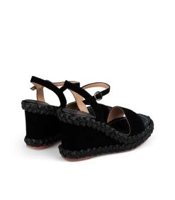 Sandalia tipo cuña con adorno trenzado. Plantilla de piel acolchada para un mayor confort. La altura del tacón es de 9,5cm.