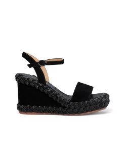Sandalia tipo cuña con adorno trenzado. Plantilla de piel acolchada para un mayor confort. La altura del tacón es de 9,5cm.