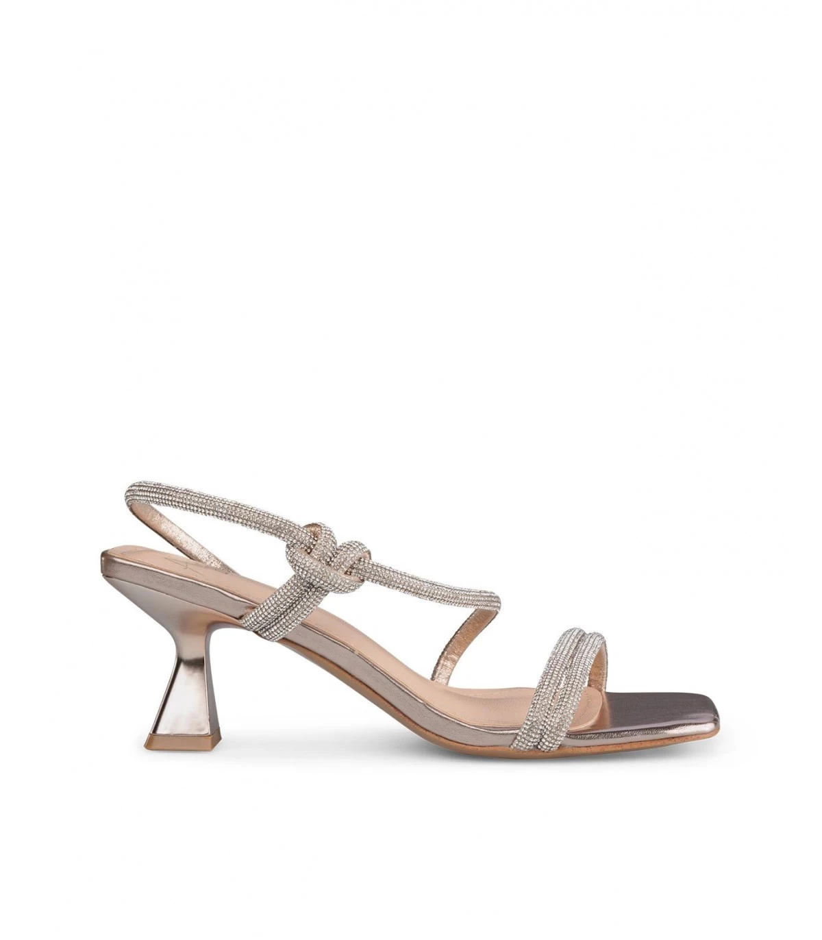 Sandalia de tacón con tiras de tachuelas y detalle nudo. Plantilla acolchada para un mayor confort. La altura del tacón es de 5,5cm.
