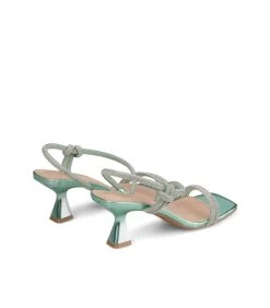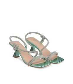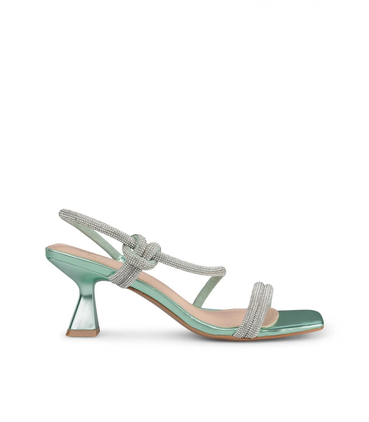 Sandalia de tacón con tiras de tachuelas y detalle nudo. Plantilla acolchada para un mayor confort. La altura del tacón es de 5,5cm.
