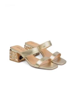 Sandalia cuña de piel con detalle trenzado y detalle de pedrería en delantero. Punta cuadrada. Cierre con hebilla en tobillo. Altura de tacón de 9,5cm.