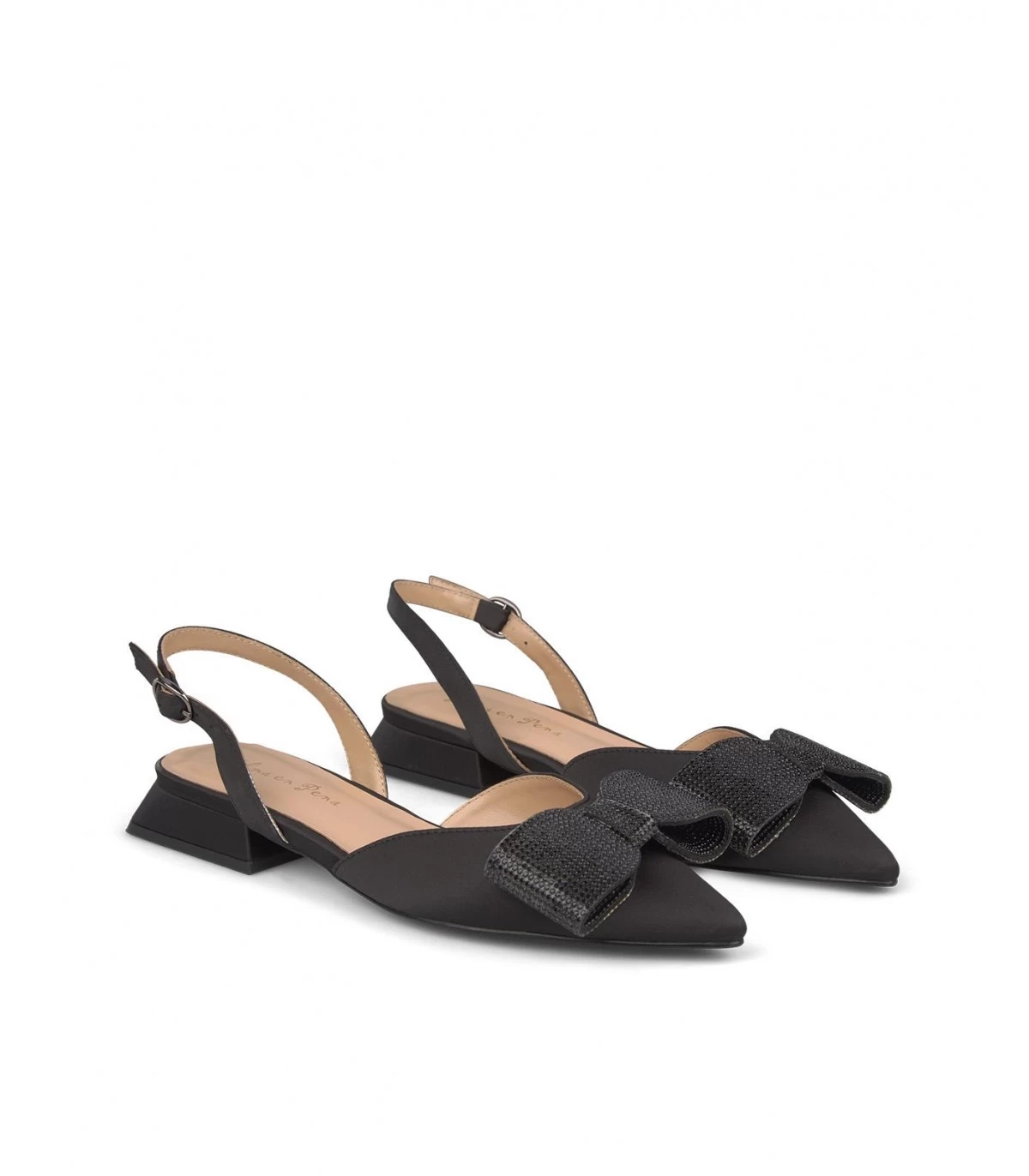 Bailarina destalonada con detalle de lazo de pedrerÃa. Plantilla acolchada de piel. La altura del tacón es de 1cm.
